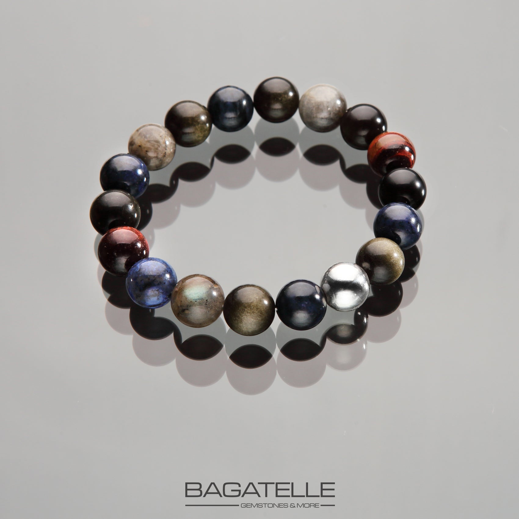 - Лабрадорит | Дюмортьерит | Обсидиан | Красный тигровый глаз (10mm)